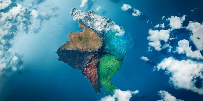 Остров разделён на шесть регионов высокими горными цепями. Каждый регион представляет свою стихию — Огонь, Воду, Камень, Джунгли, Землю или Лёд.